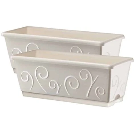 Envie de colorer votre balcon ? Les jardinières ‘has been’, c’était avant … de découvrir nos jardinières tendances et colorées aux motifs de volutes ! Incontournables pour apporter une touche déco à votre balcon ou vos rebords de fenêtre ! Les motifs en relief, issus du savoir-faire CEP, sont mis en valeur par l’association des effets mats et brillants. AVEC SOUCOUPES Dimensions : 40 x 16 x 14,5 cm Capacité : 6,10 L