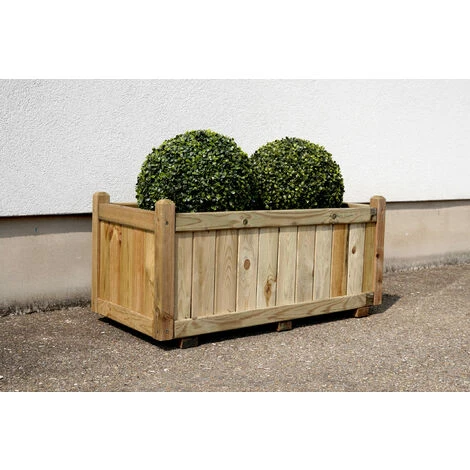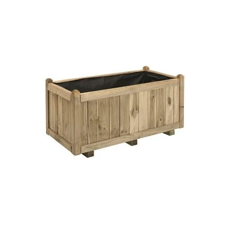 Le bac à fleurs en bois 113 L Vendôme 100 Jardipolys possède un design simple et classique pour s’intégrer très facilement dans votre jardin. Grâce à sa grande capacité, il accueillera avec élégance vos plantes, fleurs et petits arbustes. Il est conçu en pin européen dont les lames sont fixées par clouage invisible et dont les montant sont fixés par vis. Ces deux types de fixation assurent un bac robuste. Pour plus de stabilité, cette jardinière est dotée de deux pieds. Son bois est traité autoclave classe 3, afin de vous garantir une très haute résistance à l’humidité et aux alternances répétitives d’humidité et de sécheresse./Il est labellisé FSC garantissant une gestion durable de la forêt d’où provient ce bois.