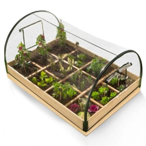 Cultivez à portée de main et facilement vos salades, petits légumes et autres herbes aromatiques grâce à cette serre potagère d’appoint ultra-complète !Ce carré potager compartimenté L.115 x l.80 x H.54 CM comprend une armature en acier peint, un châssis en bois renforcé par 4 angles métalliques et une housse de protection PVC transparente amovible. Pensée par des jardiniers professionnels, cette serre de jardin 12 compartiments L.30 x l.27 CM (soit 2 barres en bois L.115 et 3 barres L.80 cm – épaisseur 2 cm) permet d’organiser vos plantations, leur irrigation et leur traitement. La superficie cultivée est délimitée pour organiser votre jardin selon les variétés que vous souhaitez faire pousser.Sa bâche PVC transparente amovible avec liseré vert protégera les jeunes pousses des gelées tardives. Vous récolterez ainsi plus tôt en saison.Idéale pour protéger vos plantations en limitant l’accès aux limaces, oiseaux ou autres petits nuisibles !Ses 2 larges fenêtres d’aération avec scratch, situées latéralement, facilitent l’accès à l’intérieur pour l’arrosage. Ces 2 ouvertures optimisent l’aération intérieure et une température contrôlée.Astuce : Ajoutez une toile de paillage pour créer le fond de votre carré potager, stopper l’apparition de mauvaises herbes et favoriser la bonne croissance de vos plantations ! Dimensions du bac potager 12 compartiments- Dimensions globales hors tout : Largeur 115 x longueur 80 x Hauteur 54 CM- Dimensions par bac : L. 30 x l. 27 CM- Structure en acier peint coloris vert avec 4 tubes diamètre 1,6 CM- Hauteur du carré potager hors bâche : 13,5 CM- Installation facile et rapide