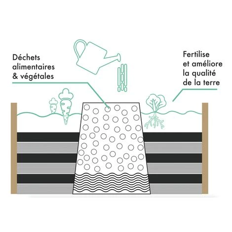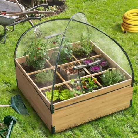 Descriptif du carré potager composteurEn plus d’être doublement fonctionnelle et hyper productive, pensée par des jardiniers professionnels, cette serre de jardin 9 compartiments permet d’organiser vos plantations, leur irrigation et leur traitement. La superficie cultivée est délimitée pour structurer votre jardin selon les variétés que vous souhaitez faire pousser.Doté d’un composteur intégré en son centre, pour apporter tous les nutriments nécessaires à vos plantes, et obtenir un rendement optimum, votre carré potager boostera la croissance de vos plantations été comme en hiver en favorisant la biodiversité.Sa bâche PVC transparente amovible avec liseré vert protégera les jeunes pousses des gelées tardives. Vous récolterez ainsi plus tôt en saison.Idéale pour protéger vos plantations en limitant l’accès aux limaces, oiseaux ou autres petits nuisibles !Ses 2 larges fenêtres d’aération relevables, situées latéralement, facilitent l’accès à l’intérieur pour l’arrosage. Ces 2 ouvertures optimisent l’aération intérieure et une température contrôlée.Son format compact 100x100x30 cm légèrement surélevé facilite en plus la culture de votre potager et son entretien.Pratique, économique, et écologique, cette solution de culture vous permet d’avoir des légumes frais à votre disposition et au besoin et ainsi de réduire le gaspillage alimentaire !Mangez naturel, et faites des économies à petit prix !Structure en acier peint coloris vert avec 4 tubes diamètre 1,1 cm.Installation facile et rapide.Dimensions du carré potager composteurDimensions hors tout sans bâche : L.100 x l.100 x H.30 cmDimensions hors tout avec bâche : L.100 x l.100 x H.100 cmDimensions du composteur : L.30 x l.30 x H. 40 cm