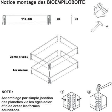 Le montage s’effectue sans clous ni vis, par simple superposition et emboitement des éléments. Nos carrés potagers sont modulables ( en achetant des planches au détail de la longueur que vous souhaitez ) , vous pourrez laisser libre cours à votre imagination, en jouant sur les hauteurs et les superpositions, pour fabriquer votre propre carré potager en fonction de vos besoins