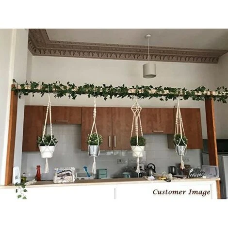 Spécifications : Matériau : corde de coton Couleur : blanc Taille : 41,34 pouces (105 cm) Longueur Style : bohème Artisanat : tissage à la main Le forfait comprend : 4 x porte-clés en corde : il y a un porte-clés sur le tapis de corde pour accrocher le crochet au plafond, balcon, fenêtre, étagère en fer, etc. Corde tressée à la main : en coton, tissée à la main, durable et solide. Pot de fleurs approprié : 41,34 pouces (105 cm) de longueur, 4 pieds. Il convient aux pots ronds et carrés, aux pots en métal, aux pots en céramique et aux pots en verre, de 5 à 25 cm de diamètre et de 10 à 30 cm de hauteur. Facile à accrocher : il suffit d’étendre les chaînes à 4 pieds et de placer le pot de fleurs au centre de la conjonction. Large application : convient pour les jardins de balcon, les projets de verdissement, la décoration de la maison, le jardinage de bureau, les centres commerciaux, les jardins d’enfants, etc.