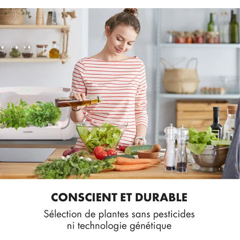 Frais, durable et garanti sans pesticides : le Jardin hydroponique Klarstein GrowIt Farm fournit à votre cuisine des légumes croquants et des herbes aromatiques toute l’année.