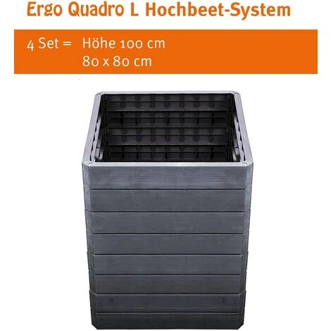 Jardinière surélevée Ergo Quadro – 25 cm, 80 x 80 cm – Anthracite, Garantia