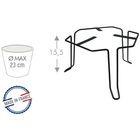 Ce stabilisateur de pot est ajustable grâce à 3 languettes en métal selon le diamètre de votre pot qui sera d’un diamètre maximal à 23 cm. Fabrication française. Acier époxy résistant au gel et UV.