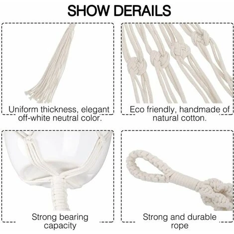 Design exquis: il peut contenir un pot de fleur, excellente décoration pour votre maison, jardin et bureau. Un cadeau idéal pour les amoureux des plantes. Montrez vos plantes et votre maison avec cet élégant cintre traditionnel en macramé.