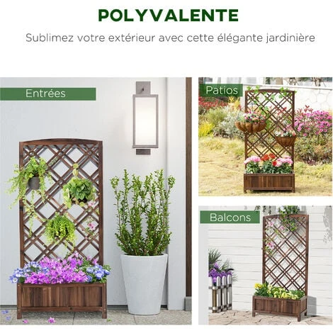 – Jardinière rectangulaire sur pieds avec treillis idéale pour planter et mettre en valeur vos jolies fleurs, plantes grimpantes ou autre