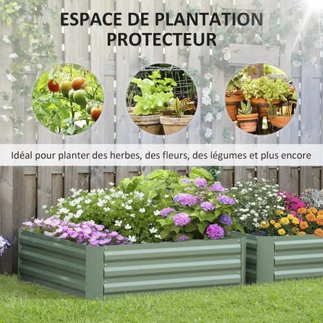 – Lot de 2 carrés potagers avec panneaux en tôle d’acier ondulés idéal pour ajouter une touche d’élégance à votre jardin ou plantation