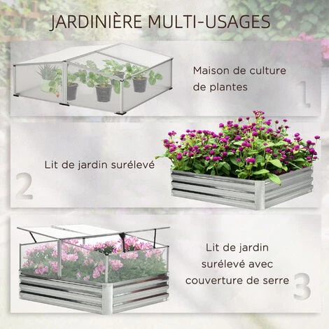 – Dim. serre : 120L x 100l x 30/40H cm