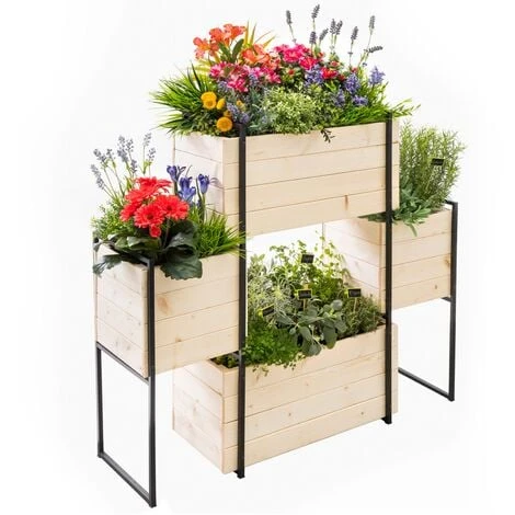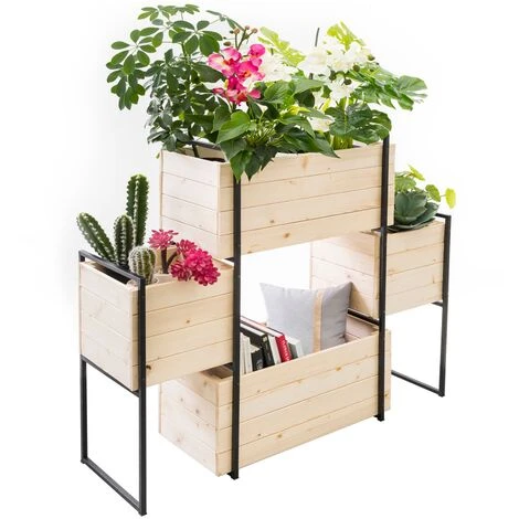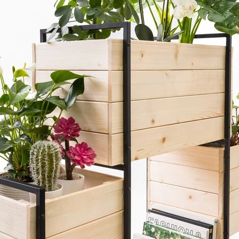 Afin de parfaire votre décoration extérieure, pensez à la jardinière SALLY ! Avec son look industriel bois et métal, la jardinière apportera la pointe de finition idéale sur votre terrasse. En plus d’être un élément de décoration à part entière, la jardinière vous permet d’amener de la couleur et des odeurs d’aromates dans votre espace extérieur ! Grâce à ses 4 bacs de plantations, vous pouvez varier vos cultures et réaliser une composition à votre goût !À vous les plats d’été relevés avec vos propres aromates : cultivez tous les condiments qui mettront votre cuisine en valeur ! La jardinière est composée de deux grands bacs de plantations de L.60 x l.28.5 x H. 29.5 CM ainsi que de deux plus petits bacs sur les côtés de L.30 x l.28.5 x H.2.5 CM.Voilà le produit idéal pour apporter une touche de décoration et de finition à votre espace extérieur tout en cultivant vos propres aromates et fleurs ! Conseil IDMarket : avant utilisation, appliquez un traitement sur le bois afin de prolonger sa durée de vie.Dimensions du potager SALLY bois et métal- Dimensions hors tout : Longueur 117 CM x largeur 31 CM x Hauteur 103 CM- Dimensions des deux grands bacs : L.60 x l.28,5 x H. 29,5 CM- Dimensions des deux petits bacs : L.30 x l.28,5 x H. 29,5 CM – Bois de 1,2 CM d’épaisseur – Jardinière bois et métalRetrouvez l’ensemble de notre gamme de potagers sur notre boutique en ligne !
