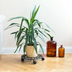 Support Roulant Réglable Pour Plantes 4 Bras Métal Noir Nature