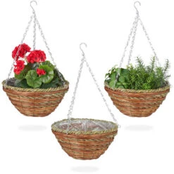 Créez plus de confort et un meilleur climat avec desplantes d’intérieur dans ces porte-plantes. Cet ensemble de 3 paniers à plantesest une alternative peu encombrante au pot de fleurs. Grâce à ses couleursdiscrètes et naturelles, le panier tressé en rotin fait à la main crée uneambiance au style bohème. La bâche à l’intérieur permet d’utiliser le pot àsuspendre comme cache-pot. L’eau d’arrosage reste dans le pot. Les supportspour plantes conviennent également à une utilisation extérieure abritée.