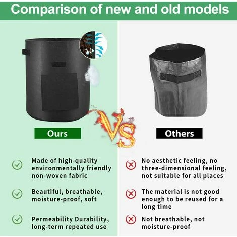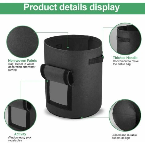 2. Nos sacs de plantation de jardin sont un ensemble de 4PCS, dont chacun a un volume de 10 gallons. C’est la taille de volume la plus scientifique pour planter certaines plantes (d’autres maisons peuvent ne pas mesurer 10 gallons, veuillez faire attention lors de l’achat)