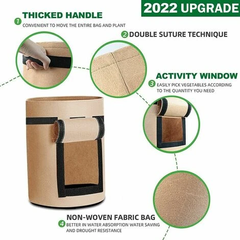 【Matériau durable de protection de l’environnement】 : notre sac de culture de plantes est fabriqué en tissu non tissé de haute qualité respectueux de l’environnement avec fenêtre visualisée. Nous pouvons facilement observer et récolter les produits plantés. Le sac de culture de pommes de terre est respirant, auto-absorbant, flexible, anti-corrosion, durable et économe en eau. Réutilisable, pliable et léger. Le sac de plantation de pommes de terre permet aux racines de respirer pleinement, favorisant ainsi la croissance des plantes de manière saine.